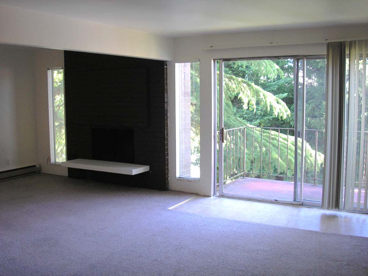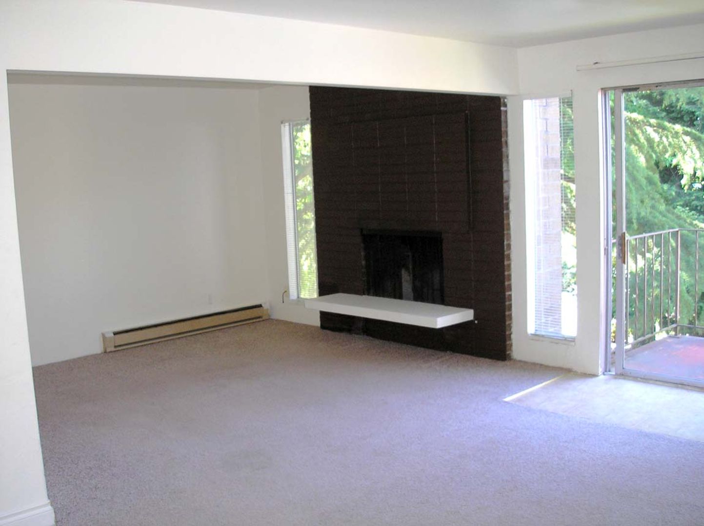 This spacious unit features a large living room with cozy fireplace, a separate dining area, and a private patio for relaxing or entertaining.