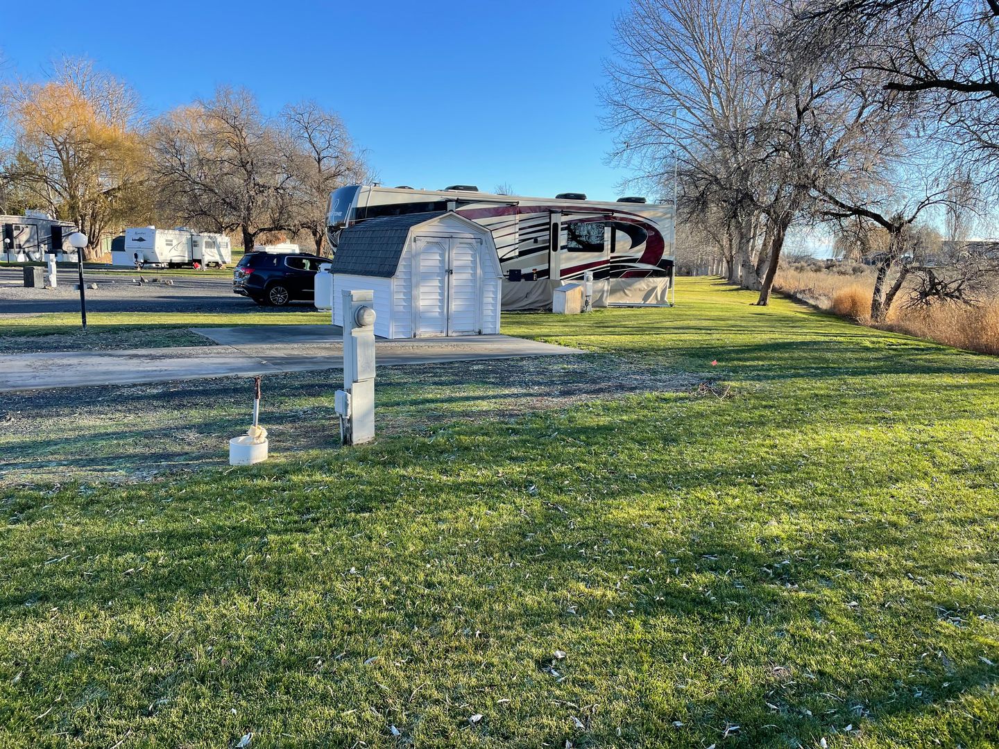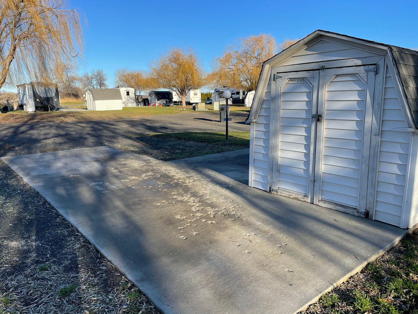 55+ RV Park in beautiful Eastern Washington. Just minutes from Potholes State Park and Mardon Resort, where you can fish, swim or just have a picnic in the park. Golf courses are nearby as well (for all you golfers out there). Gazebo, community center, and laundry facilities on-site for our guests to use. Huge grass lots give you lots of room to relax while you visit at our wonderful park. Stay for a night, a week, the summer, or even the whole year. The price only get better the longer you stay!