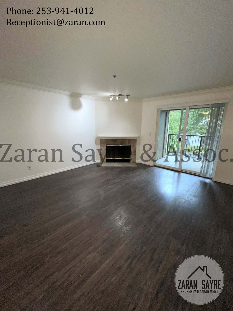 Lovely second level unit with covered parking space. This beautifully updated 2 bed, 2 bath condo includes newer stainless steel appliances w/granite counter tops, gleaming laminate floors, wood burning fireplace. Roomy primary bedroom w/walk-in closet and full bath. Full size washer/dryer. Right on the bus-line, minutes from the freeway and Federal Way Transit Center.